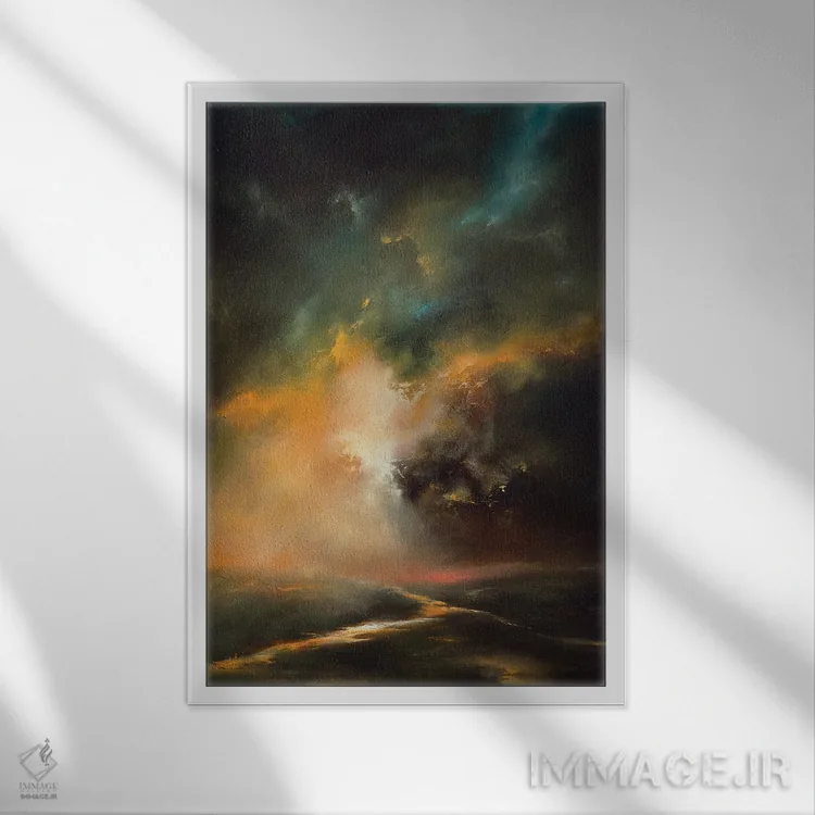 براساس پالت ترکیبی اثر، قاب بلوط روشن (چوبی) پیشنهاد اول است و استخوانی ملایم مکمل. برای سفارشهای پروژهای با ابعاد و قابهای اختصاصی با ایماژ در تماس باشید.