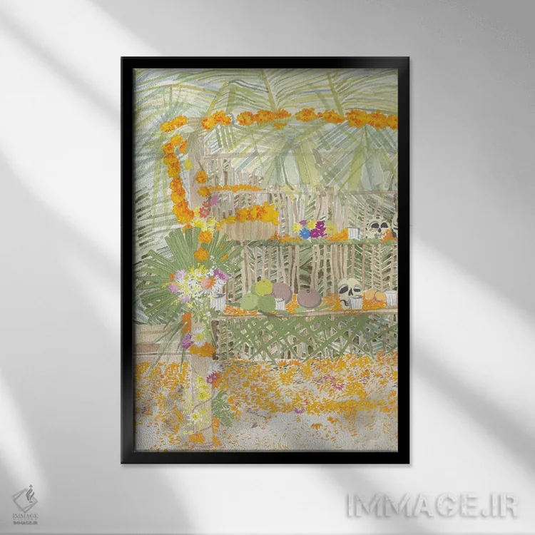 براساس پالت ترکیبی اثر، قاب بلوط روشن (چوبی) پیشنهاد اول است و استخوانی ملایم مکمل. برای سفارشهای پروژهای با ابعاد و قابهای اختصاصی با ایماژ در تماس باشید.