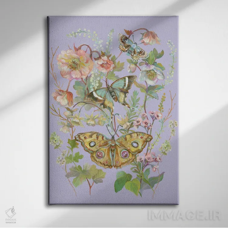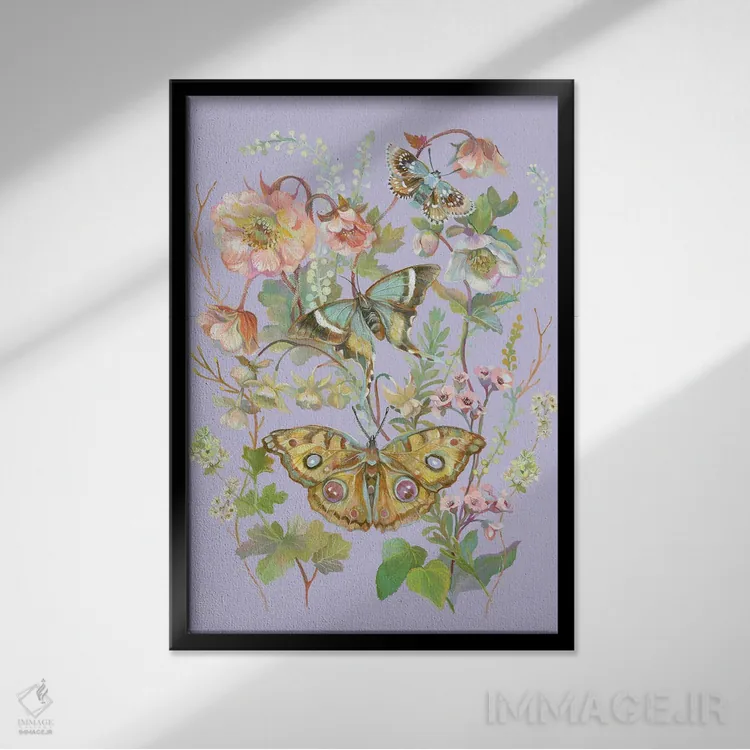 برای دیوارهای ساده، «باغ پروانهٔ یاسی» اثرِ «کلارا مکآلیستر» در کنار رنگهای خنثی، تضاد دلچسبی میسازد؛ برای اتاق بازی یا گوشهٔ مطالعه انتخابی خوشسلیقه است. هر بار نگاهش میکنید، یک جزئیات تازه به چشم میآید.