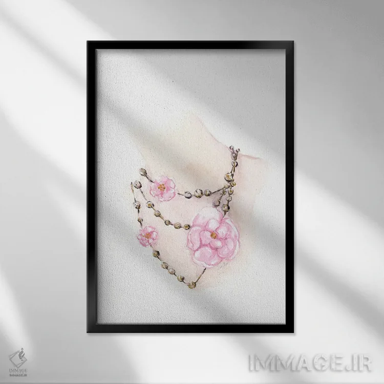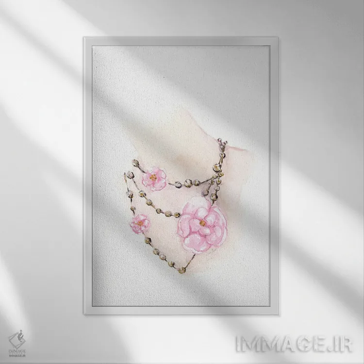 تابلو دکوراتیو گردنبند مهره ای گلدار اثر استلا چانگ - نمای قاب‌دار سفید