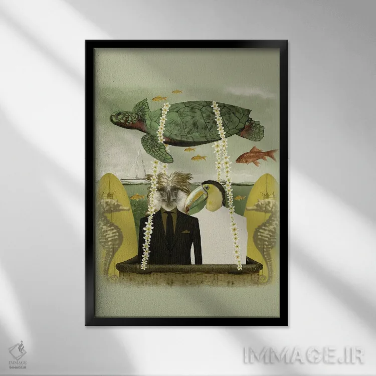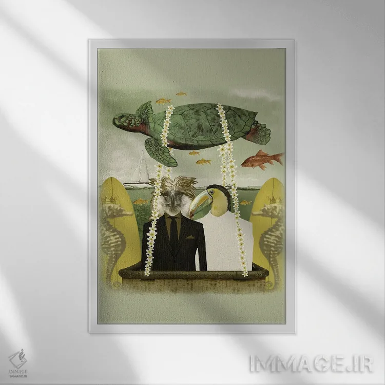 براساس پالت ترکیبی اثر، قاب بلوط روشن (چوبی) پیشنهاد اول است و استخوانی ملایم مکمل. برای سفارشهای پروژهای با ابعاد و قابهای اختصاصی با ایماژ در تماس باشید.