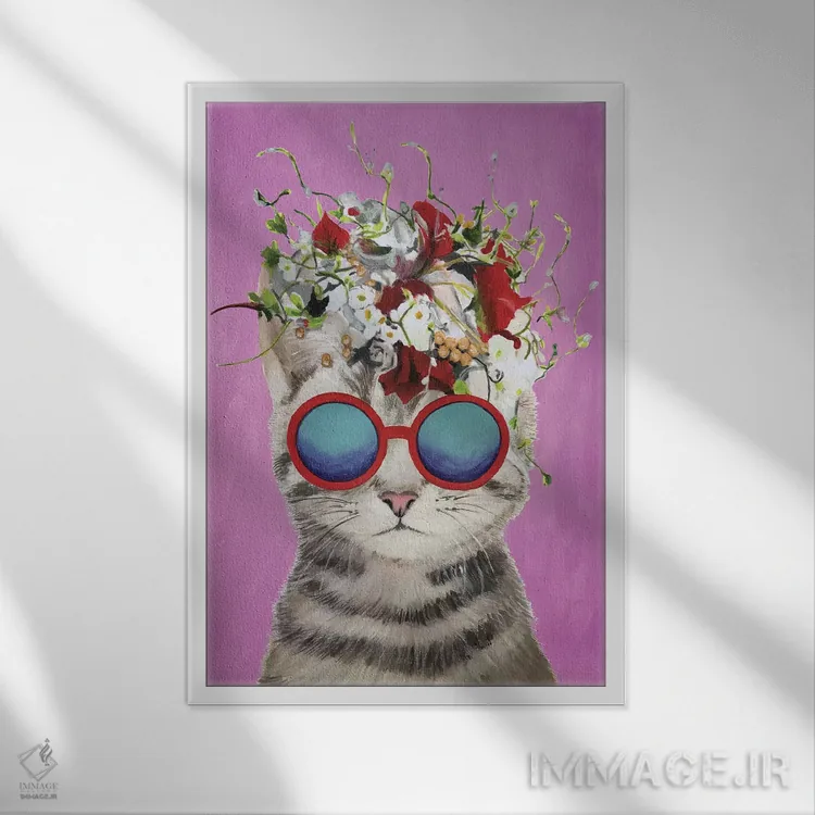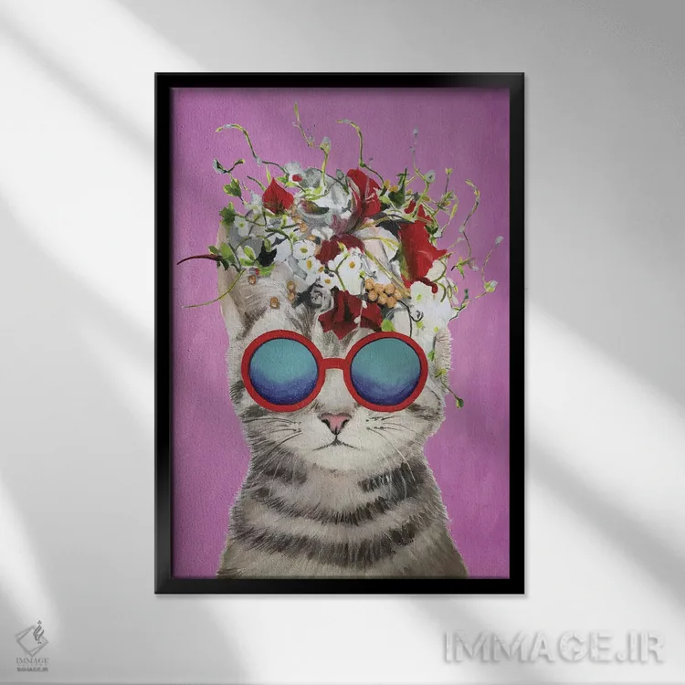 تابلو دکوراتیو گربه قدرت گل، صورتی اثر کوکو د پاریس