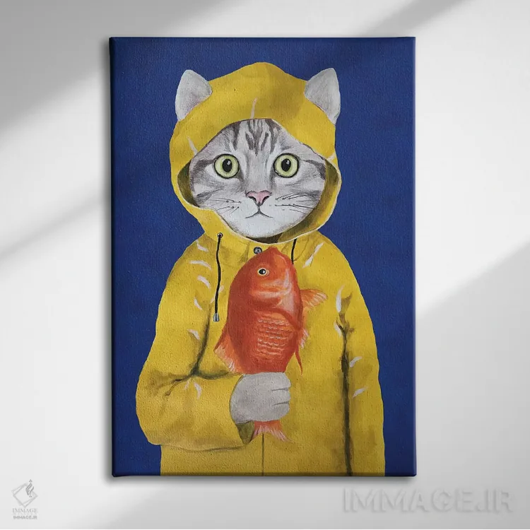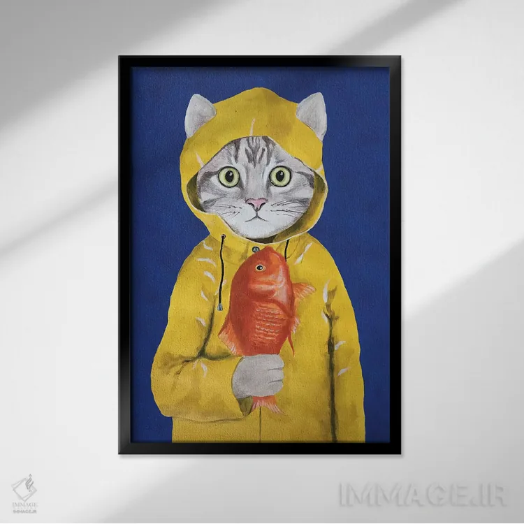 برای دیوارهای ساده، «گربه با ماهی» اثرِ «کوکو د پاریس» فضا را صمیمیتر و دعوتکنندهتر نشان میدهد؛ برای راهروها و ورودیهای گرم انتخابی خوشسلیقه است. با نورپردازی نقطهای، جذابتر هم میشود.