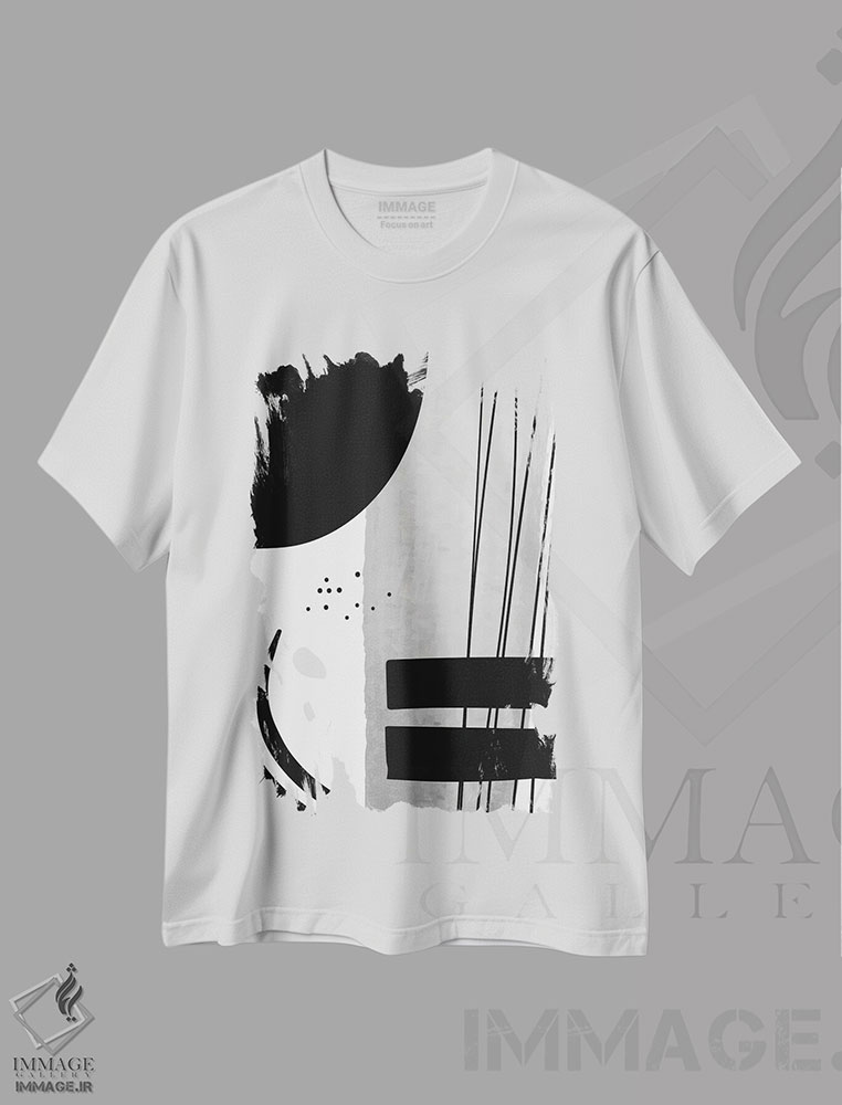 تیشرت «آبستره هندسی آبرنگی سیاه و سفید II»: معرفی اثر و ایده های ست رنگی