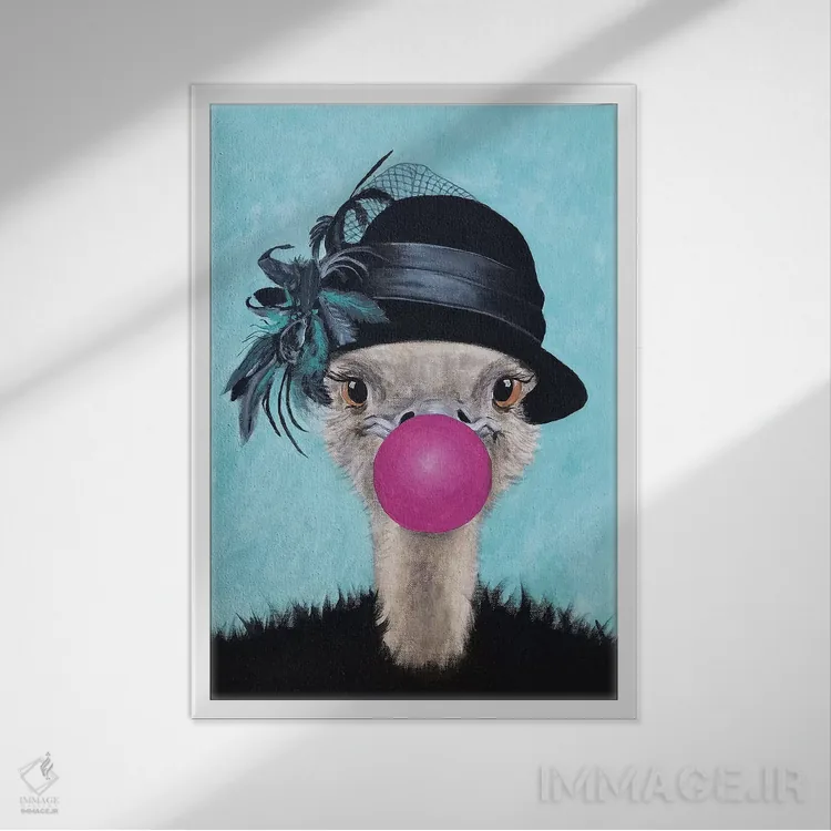 برای اتاقی که به یک عنصر دوستداشتنی نیاز دارد، «شترمرغ با آدامس بادکنکی» اثرِ «کوکو د پاریس» در کنار رنگهای خنثی، تضاد دلچسبی میسازد؛ برای دکورهایی با رنگهای خنثی انتخابی خوشسلیقه است. با قاب چوبی یا مشکی، حس مرتبتری پیدا میکند.