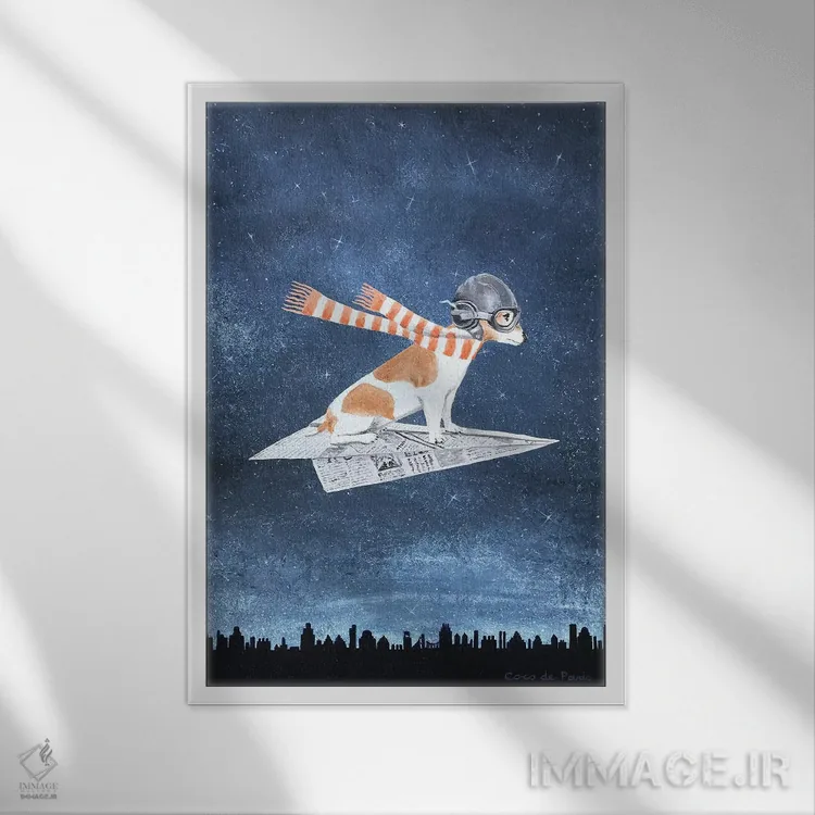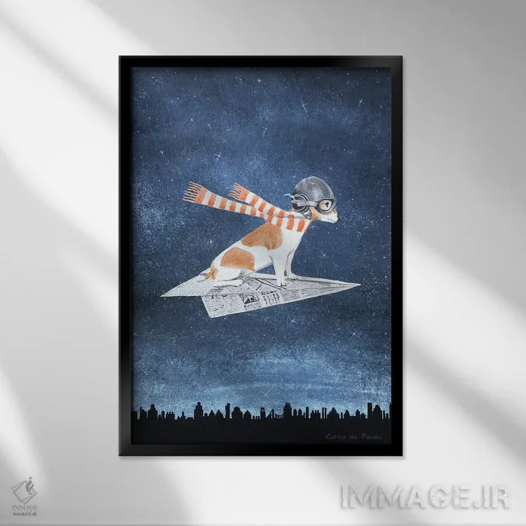 تابلو دکوراتیو جک راسل روی هواپیمای کاغذی اثر کوکو د پاریس