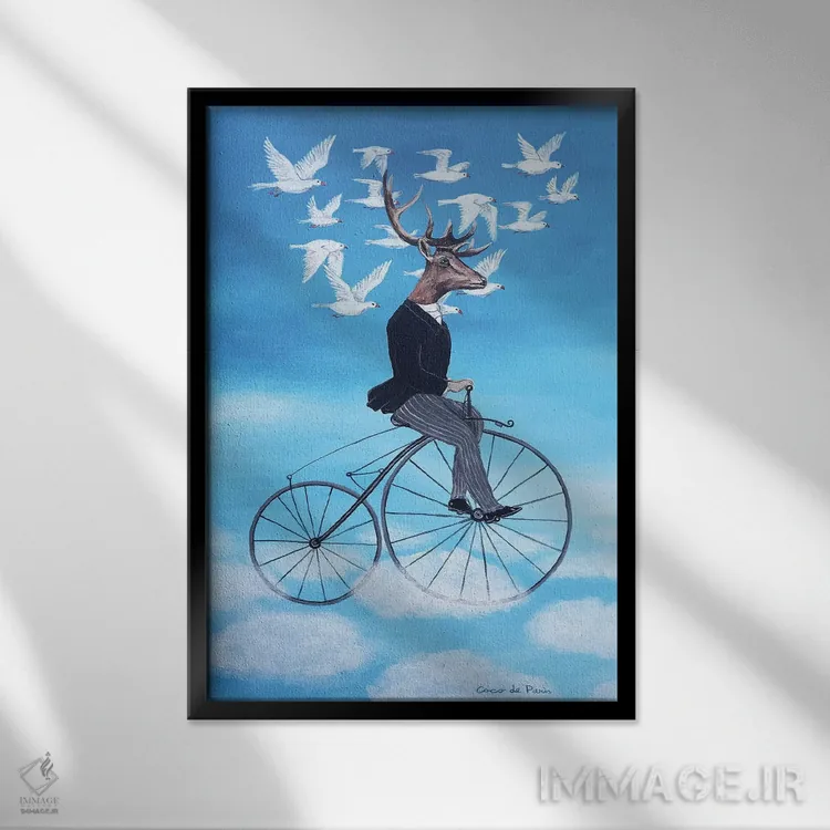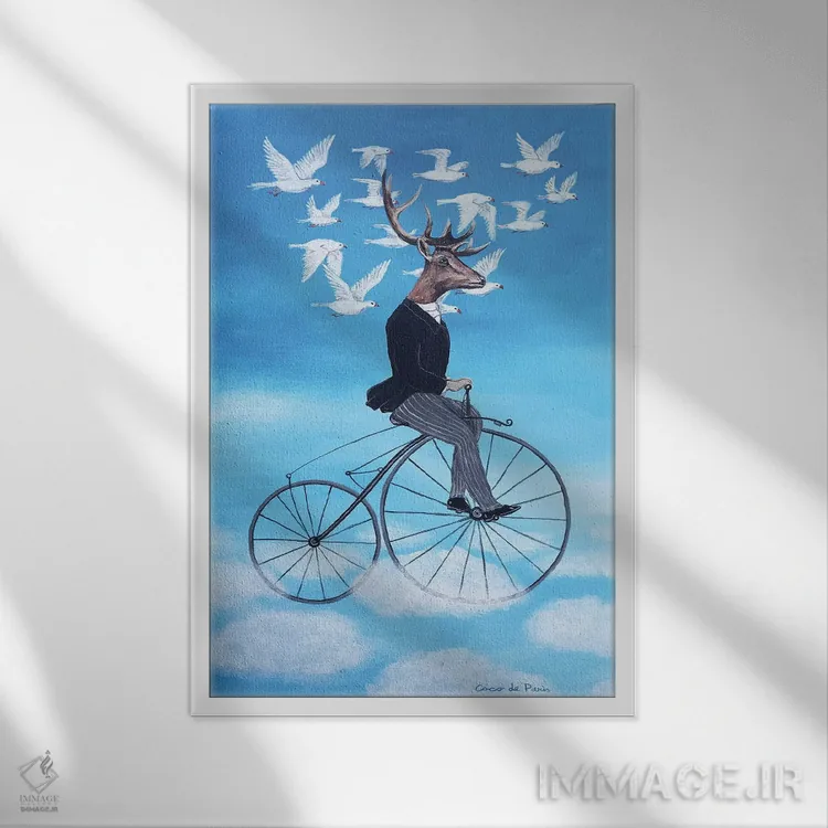 «گوزن رویاپرداز در حال دوچرخهسواری» اثرِ «کوکو د پاریس» با موضوعِ این اثر، یک انتخاب دوستداشتنی برای افزودن انرژی و صمیمیت به فضاست.