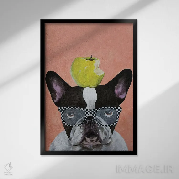 تابلو دکوراتیو بولداگ فرانسوی با سیب اثر کوکو د پاریس