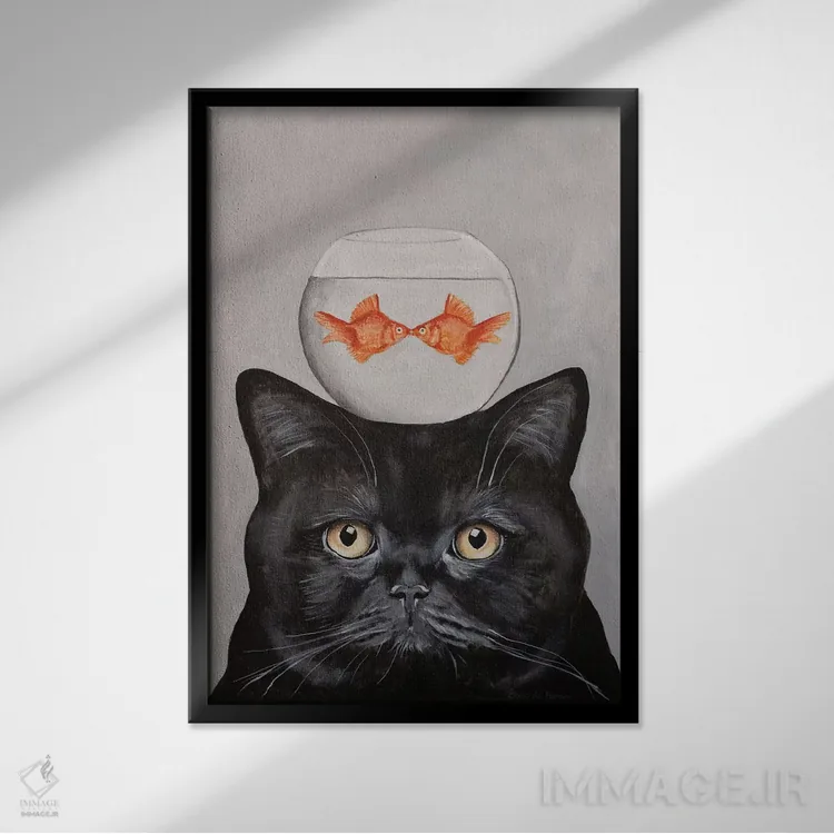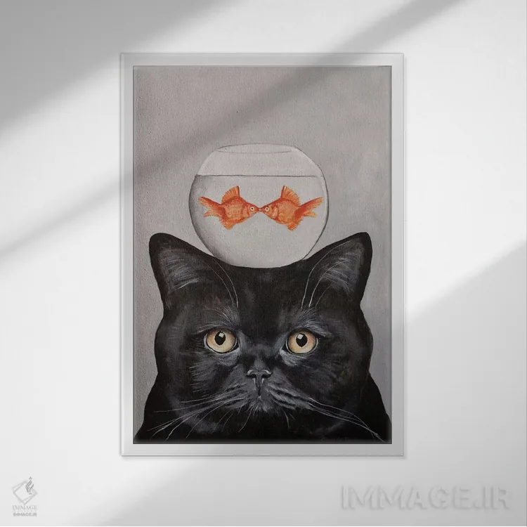 تابلو دکوراتیو گربه با تنگ ماهی اثر کوکو د پاریس