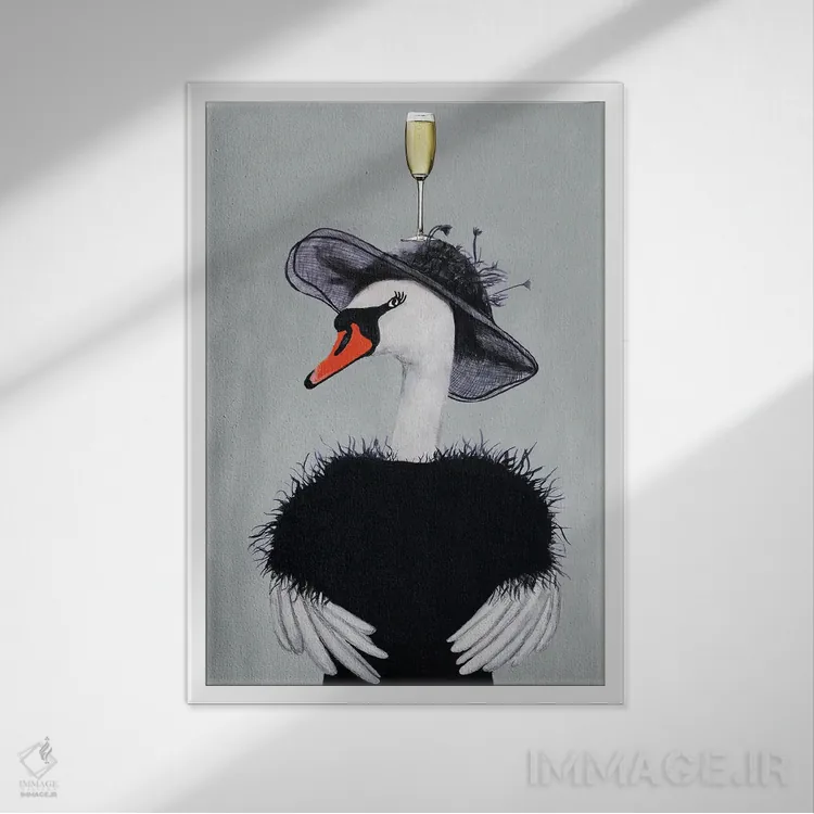 تابلو دکوراتیو قو با جام شامپاین اثر کوکو د پاریس