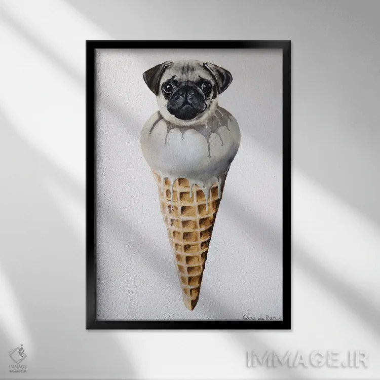 برای اتاقی که به یک عنصر دوستداشتنی نیاز دارد، «پاگ بستنیخور» اثرِ «کوکو د پاریس» یک لبخند ریز به چیدمان میدهد؛ برای اتاق بازی یا گوشهٔ مطالعه انتخابی خوشسلیقه است. برای دیوار گالریوار هم گزینهٔ خوبیست.