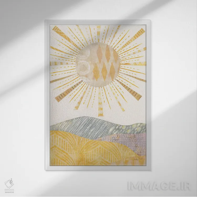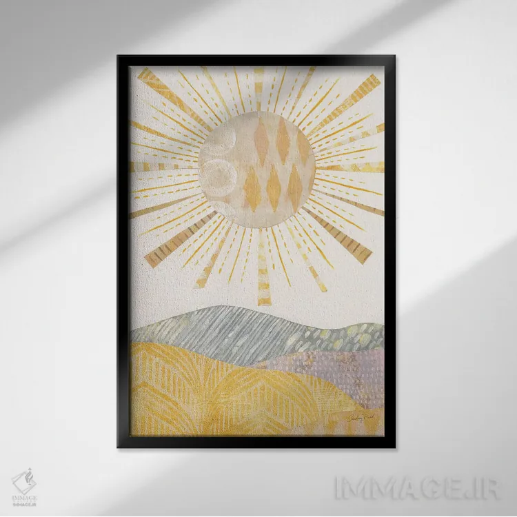 براساس پالت گرم اثر، قاب بلوط روشن (چوبی) پیشنهاد اول است و استخوانی ملایم مکمل. برای سفارشهای پروژهای با ابعاد و قابهای اختصاصی با ایماژ در تماس باشید.