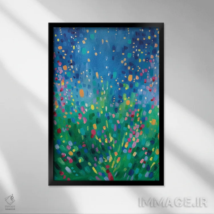 براساس پالت ترکیبی اثر، قاب تیک گرم (چوبی) پیشنهاد اول است و مشکی مات (فریم متوسط) مکمل. برای سفارشهای پروژهای با ابعاد و قابهای اختصاصی با ایماژ در تماس باشید.