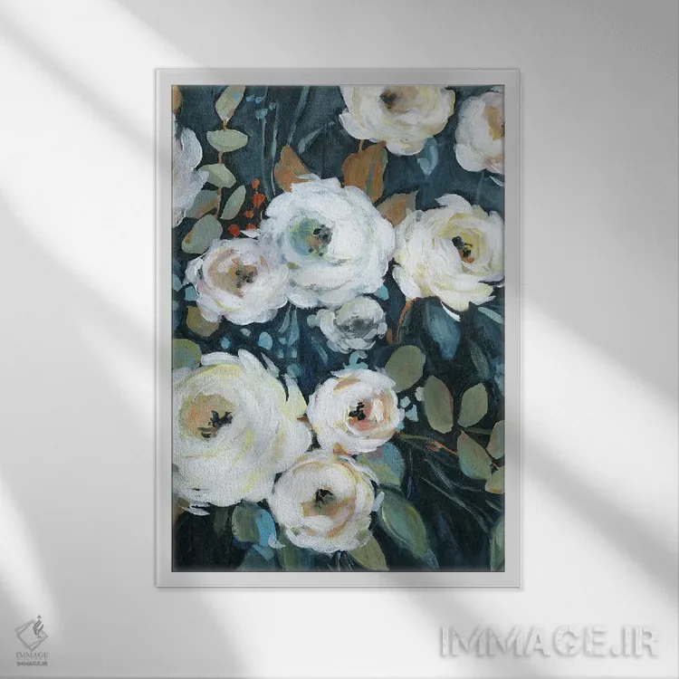 براساس پالت سرد اثر، قاب سفید مات (فریم باریک) پیشنهاد اول است و نقرهای برسخورده (متالیک) مکمل.