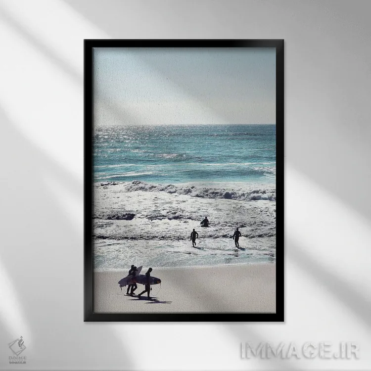 تابلو دکوراتیو بهشت موج سواران اثر ناتالی کارپنتری - نمای قاب‌دار مشکی