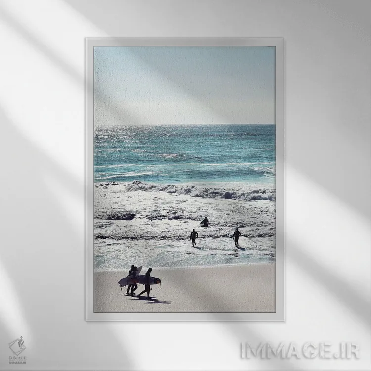 تابلو دکوراتیو بهشت موج سواران اثر ناتالی کارپنتری - نمای قاب‌دار سفید