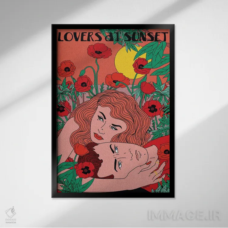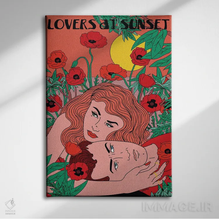 «عاشقان هنگام غروب» اثرِ «کازمو» یک قاب مدرن و خوشفرم است؛ موضوعِ این اثر در اجرای هنری خوانا و سئوپذیرِ دیواری میشود.