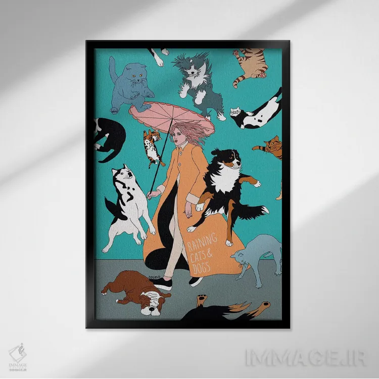 برای اتاقی که به یک عنصر دوستداشتنی نیاز دارد، «گربهها و سگها» اثرِ «کازمو» به دیوار، انرژیِ نرم و زنده میدهد؛ برای کافههای کوچک و صمیمی انتخابی خوشسلیقه است. هر بار نگاهش میکنید، یک جزئیات تازه به چشم میآید.