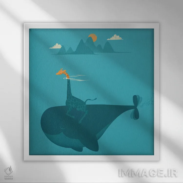 «زیردریایی طبیعت (کنایه به حیوانی دریایی)» اثرِ «جی فلک» با تایپوگرافیِ کنترلشده، روی دیوار خوب مینشیند؛ برای کنار کتابخانه، میز کار یا راهروهای باریک عالی است.