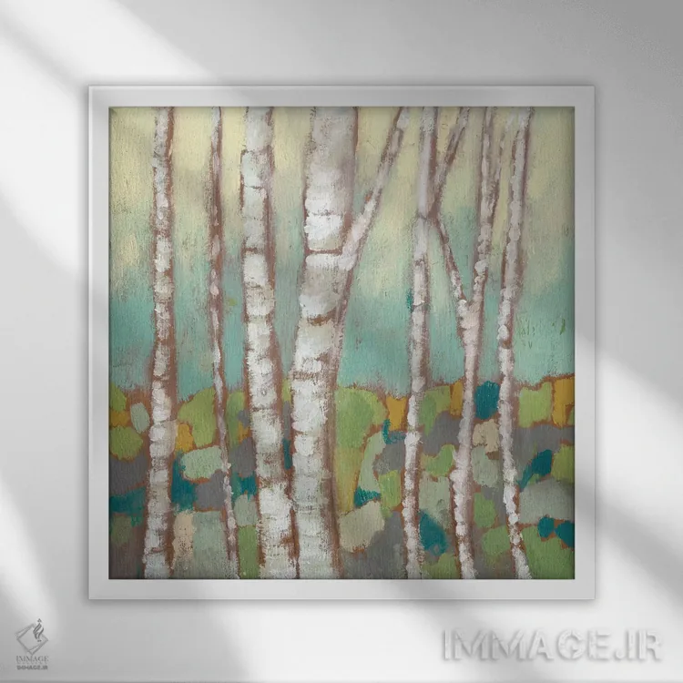 برای فضاهایی که به لطافت نیاز دارند، «تنههای درخت توس چندرنگ II» اثرِ «جنیفر گلدبرگر» تعادل رنگیِ لطیفی به چیدمان میدهد؛ برای فضای غذاخوری انتخابی خوشسلیقه است. با قاب روشن یا چوبی، حس طبیعیتری پیدا میکند.
