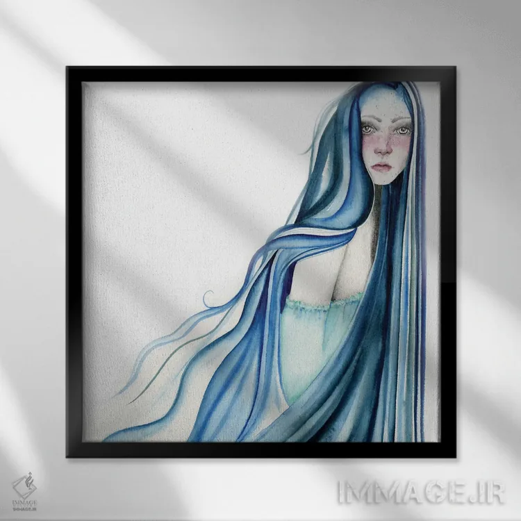براساس پالت سرد اثر، قاب سفید مات (فریم باریک) پیشنهاد اول است و نقرهای برسخورده (متالیک) مکمل.