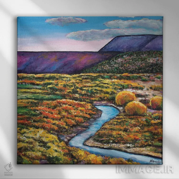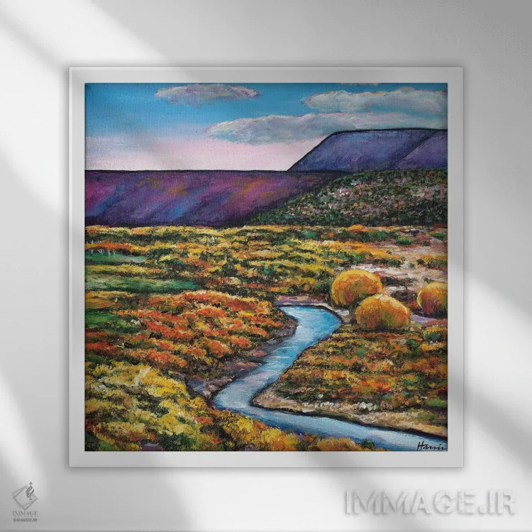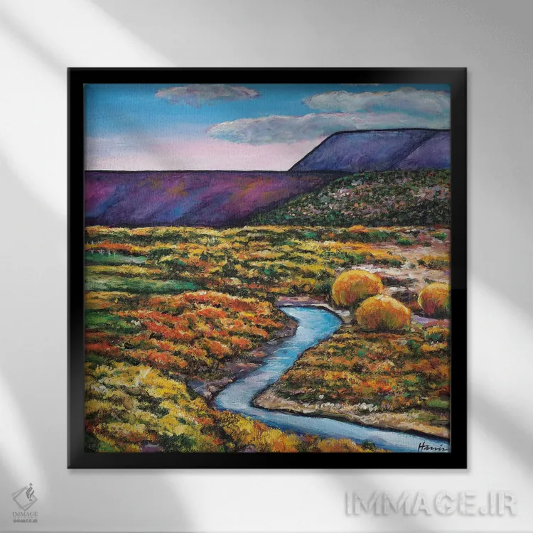 براساس پالت ترکیبی اثر، قاب تیک گرم (چوبی) پیشنهاد اول است و مشکی مات (فریم متوسط) مکمل. برای سفارشهای پروژهای با ابعاد و قابهای اختصاصی با ایماژ در تماس باشید.
