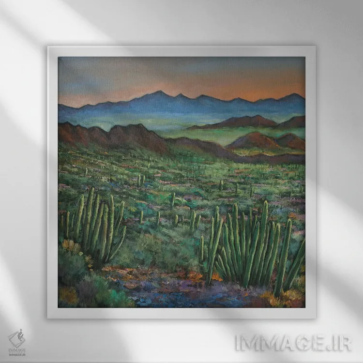 براساس پالت ترکیبی اثر، قاب بلوط روشن (چوبی) پیشنهاد اول است و استخوانی ملایم مکمل. برای سفارشهای پروژهای با ابعاد و قابهای اختصاصی با ایماژ در تماس باشید.