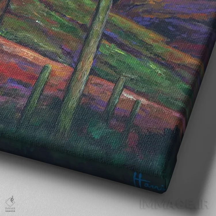 طراحی بوم گالری ایماژ بهگونهای است که اثر روی دیوار «پرداختشده» و حرفهای دیده شود—نه پرزرقوبرقِ بیپایه؛ بلکه دقیق و خوشپرداخت. با بافت ظریف کنواس، حس اثر هنری را در نگاه نزدیک نگه میدارد و نتیجه را یکدستتر میکند. در کنترل تونها، تعادل بهتری بین نور و رنگ ایجاد میکند. در نهایت، نتیجه چیزی شبیه تفاوت نسخهی معمولی با نسخهی باکیفیتتر است: نه رنگِ بیشتر، بلکه پرداخت بهتر؛ و اگر بخواهید، میتوان چیدمان را برای گالریوال هم پیشنهاد داد.