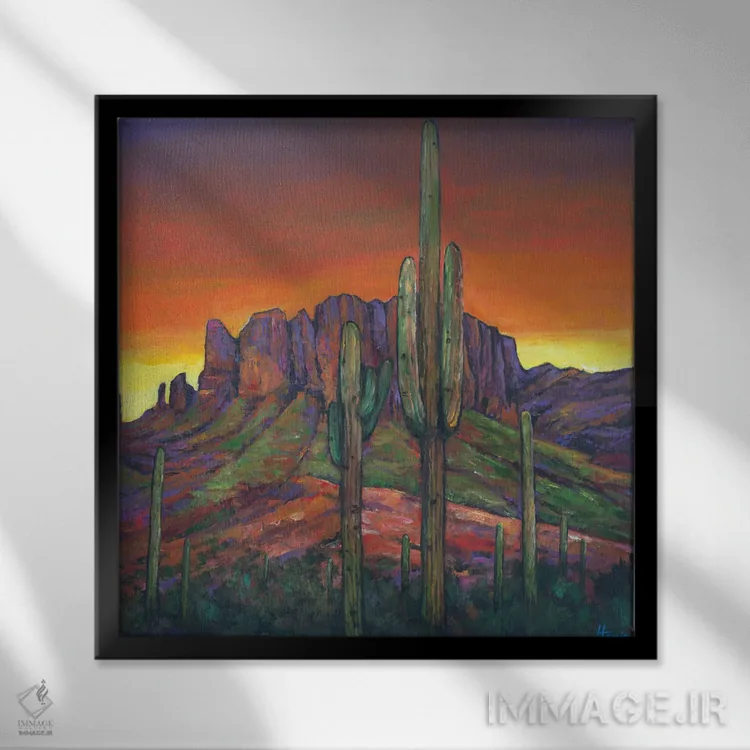 براساس پالت ترکیبی اثر، قاب تیک گرم (چوبی) پیشنهاد اول است و مشکی مات (فریم متوسط) مکمل. برای سفارشهای پروژهای با ابعاد و قابهای اختصاصی با ایماژ در تماس باشید.