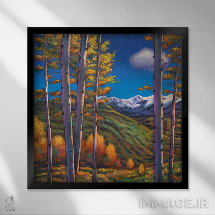 براساس پالت ترکیبی اثر، قاب تیک گرم (چوبی) پیشنهاد اول است و مشکی مات (فریم متوسط) مکمل. برای سفارشهای پروژهای با ابعاد و قابهای اختصاصی با ایماژ در تماس باشید.