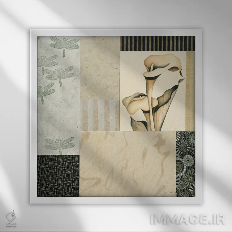 اگر میخواهید دیوار کمی سرزندگیِ محترمانه داشته باشد، «کلاژ با گل کالا لیلی III» اثرِ «جولیان جانسون» مثل یک امضای بامزه اما متین عمل میکند، برای دکورهای مدرن و مینیمال گزینهٔ مناسبیست. هم فضا را گرم میکند، هم شلوغش نمیکند.