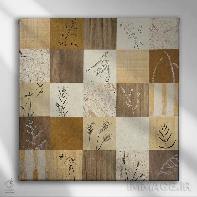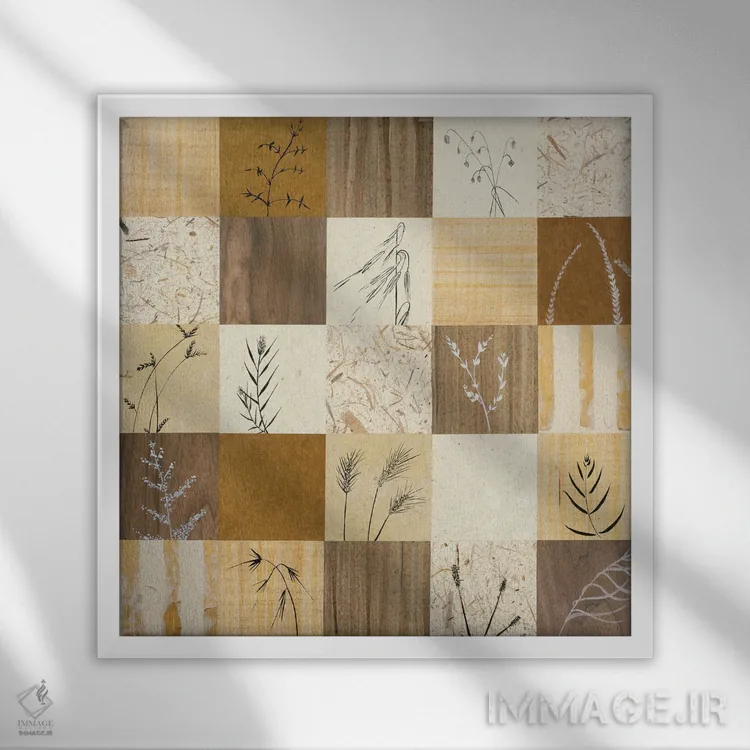 براساس پالت گرم اثر، قاب بلوط روشن (چوبی) پیشنهاد اول است و استخوانی ملایم مکمل. برای سفارشهای پروژهای با ابعاد و قابهای اختصاصی با ایماژ در تماس باشید.