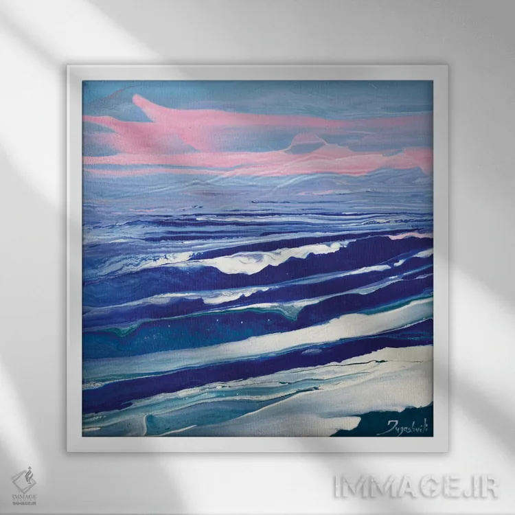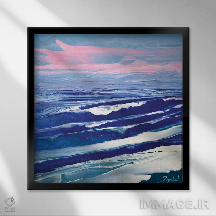 براساس پالت سرد اثر، قاب سفید مات (فریم باریک) پیشنهاد اول است و نقرهای برسخورده (متالیک) مکمل. برای سفارشهای پروژهای با ابعاد و قابهای اختصاصی با ایماژ در تماس باشید.