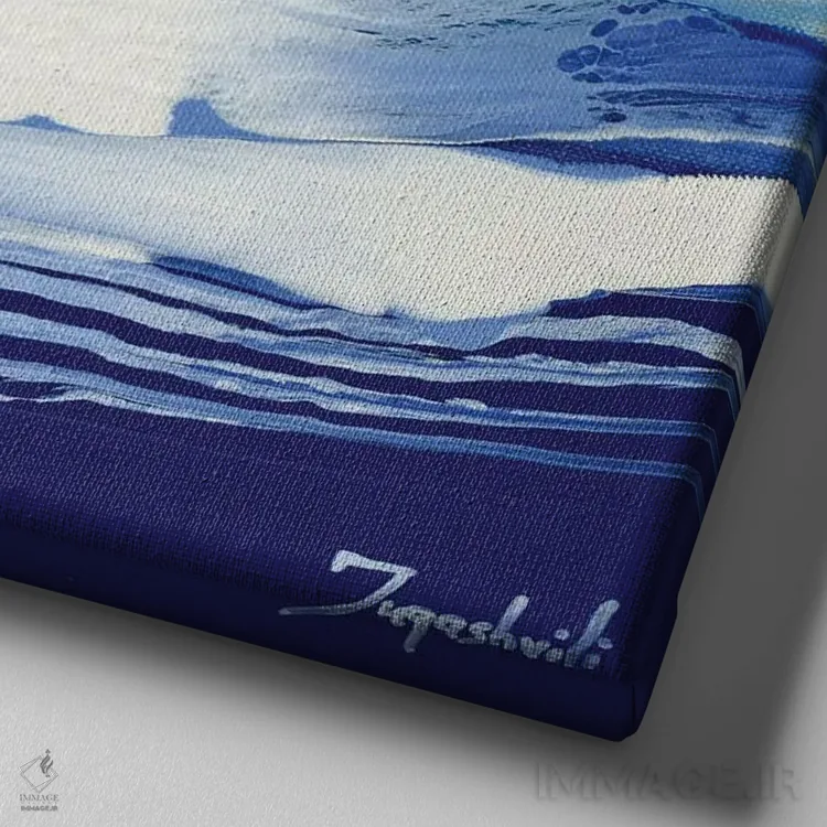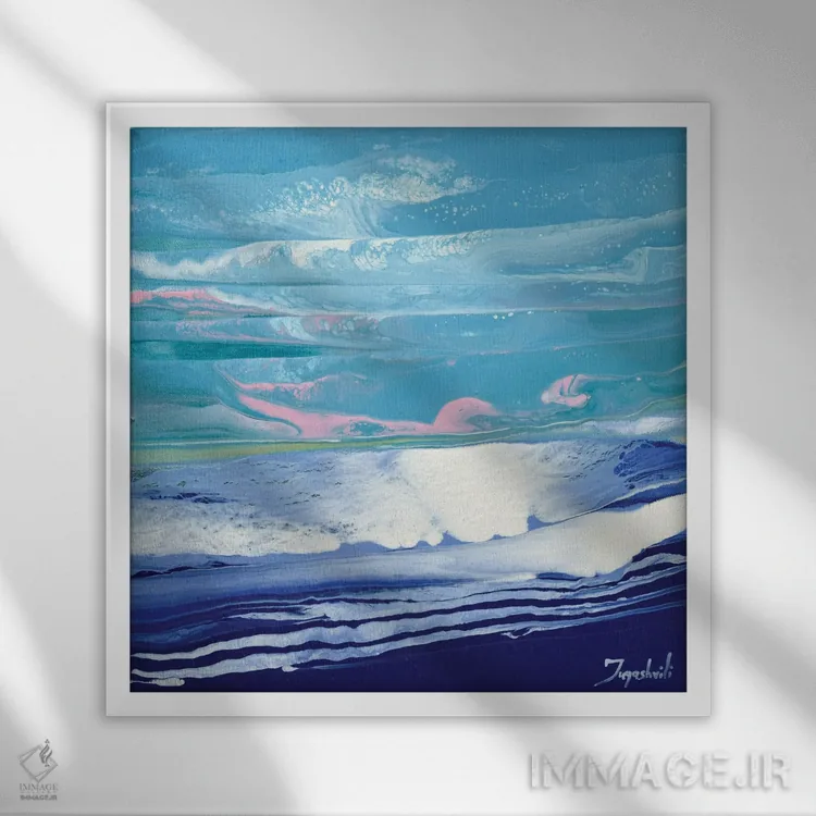 براساس پالت سرد اثر، قاب سفید مات (فریم باریک) پیشنهاد اول است و نقرهای برسخورده (متالیک) مکمل. برای سفارشهای پروژهای با ابعاد و قابهای اختصاصی با ایماژ در تماس باشید.