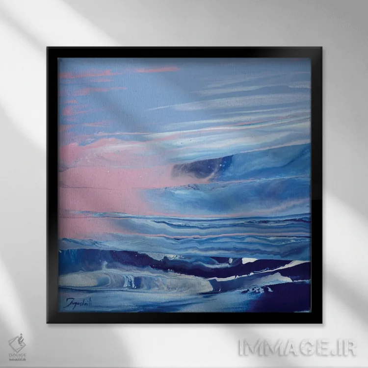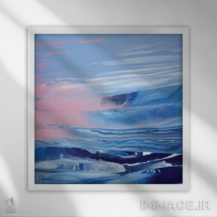 براساس پالت سرد اثر، قاب سفید مات (فریم باریک) پیشنهاد اول است و نقرهای برسخورده (متالیک) مکمل. برای سفارشهای پروژهای با ابعاد و قابهای اختصاصی با ایماژ در تماس باشید.