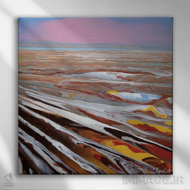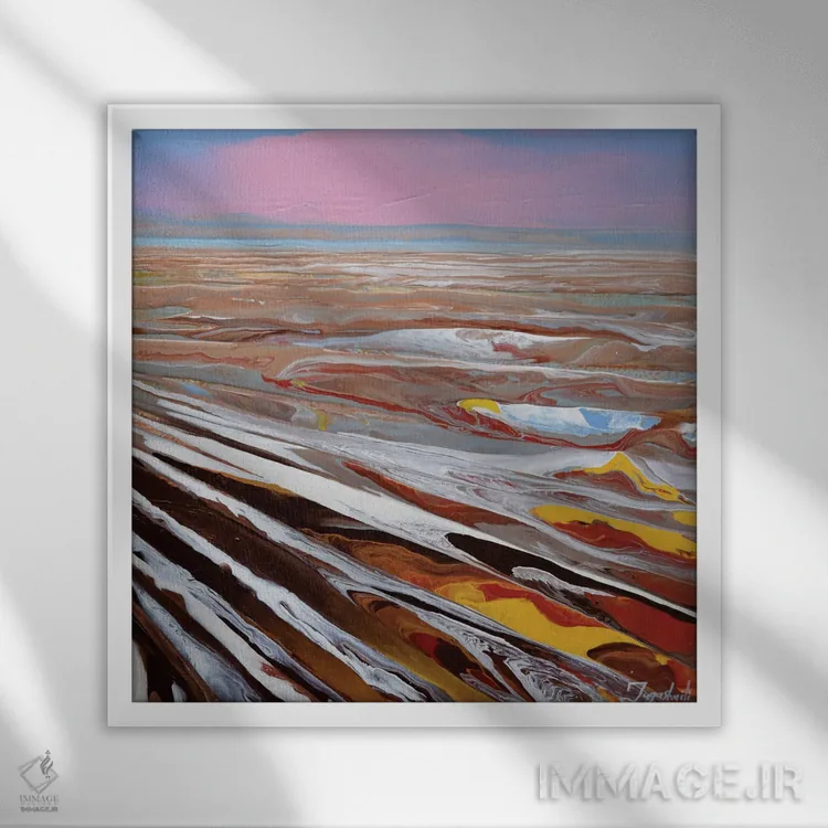 براساس پالت ترکیبی اثر، قاب تیک گرم (چوبی) پیشنهاد اول است و مشکی مات (فریم متوسط) مکمل. برای سفارشهای پروژهای با ابعاد و قابهای اختصاصی با ایماژ در تماس باشید.