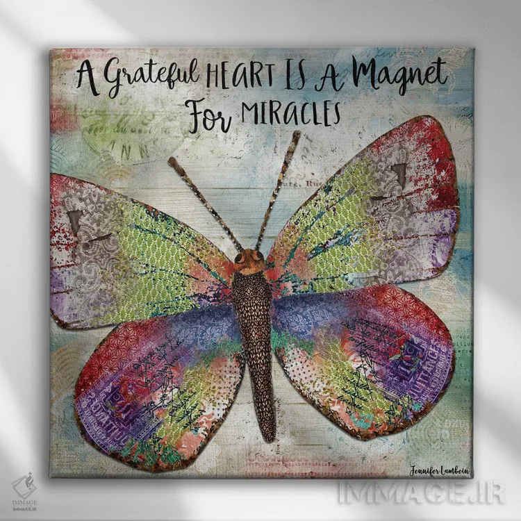 تابلو دکوراتیو پروانه قلب قدردان اثر جنیفر لمباین