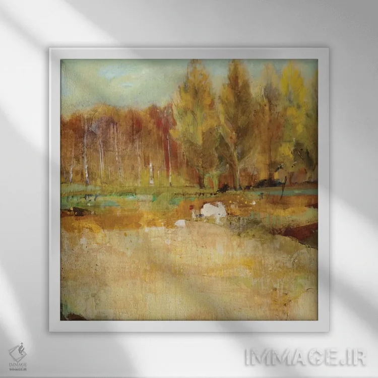 براساس پالت ترکیبی اثر، قاب تیک گرم (چوبی) پیشنهاد اول است و مشکی مات (فریم متوسط) مکمل. برای سفارشهای پروژهای با ابعاد و قابهای اختصاصی با ایماژ در تماس باشید.