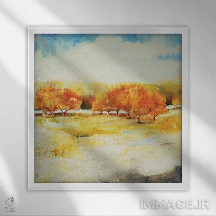 براساس پالت گرم اثر، قاب بلوط روشن (چوبی) پیشنهاد اول است و استخوانی ملایم مکمل. برای سفارشهای پروژهای با ابعاد و قابهای اختصاصی با ایماژ در تماس باشید.