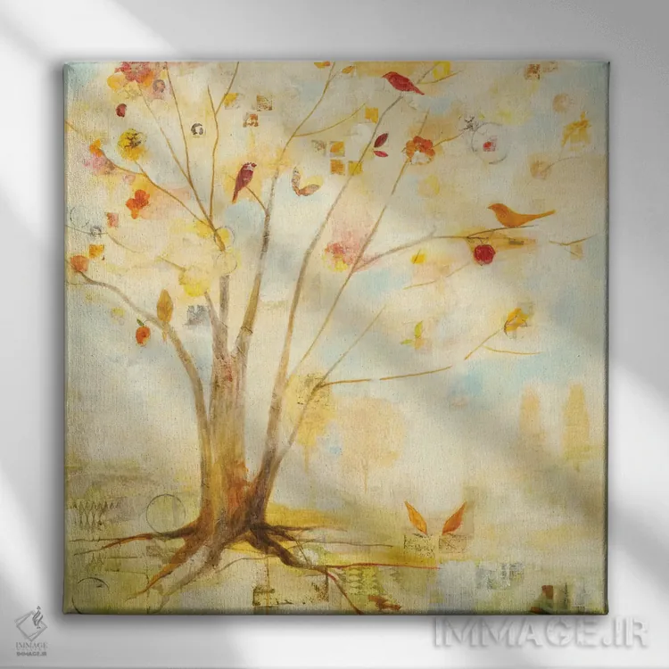 براساس پالت گرم اثر، قاب بلوط روشن (چوبی) پیشنهاد اول است و استخوانی ملایم مکمل. برای سفارشهای پروژهای با ابعاد و قابهای اختصاصی با ایماژ در تماس باشید.