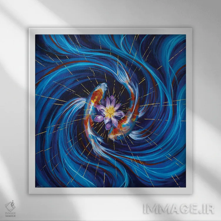 براساس پالت ترکیبی اثر، قاب تیک گرم (چوبی) پیشنهاد اول است و مشکی مات (فریم متوسط) مکمل. برای سفارشهای پروژهای با ابعاد و قابهای اختصاصی با ایماژ در تماس باشید.
