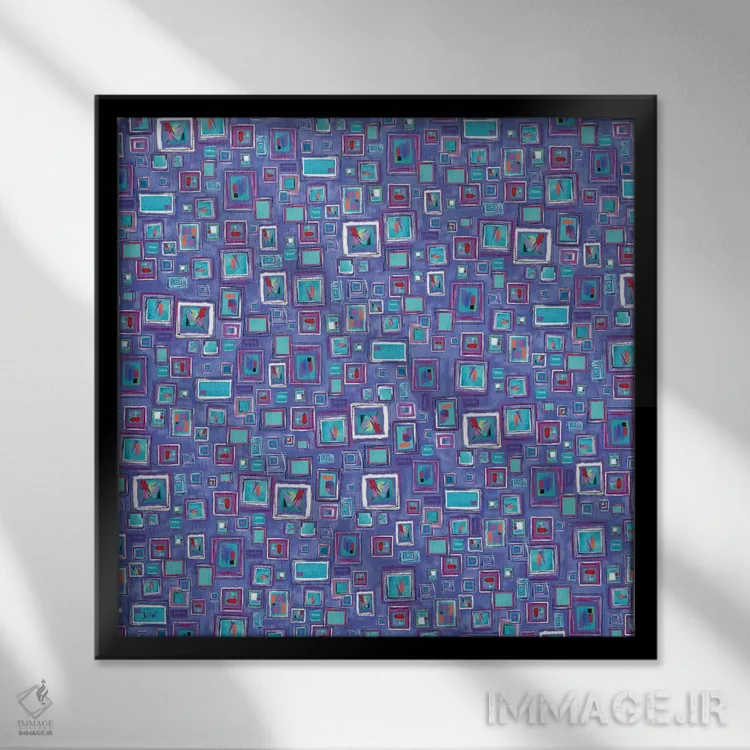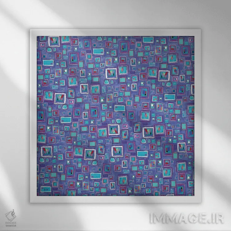 در «مربعهای آبی» اثرِ «جولیز (نام هنری/لقب)»، موضوعِ این اثر با زبانِ انتزاعی روایت میشود؛ متفاوت، اما دکورپذیر.