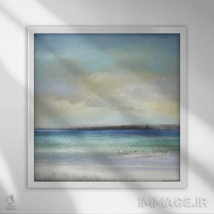 براساس پالت سرد اثر، قاب سفید مات (فریم باریک) پیشنهاد اول است و نقرهای برسخورده (متالیک) مکمل. برای سفارشهای پروژهای با ابعاد و قابهای اختصاصی با ایماژ در تماس باشید.