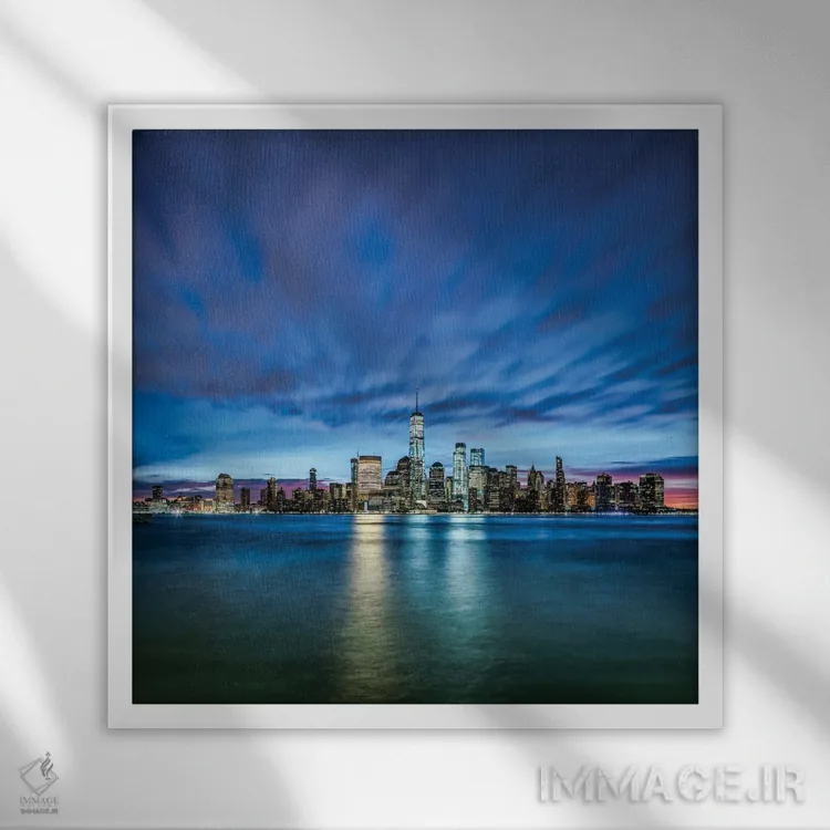 برای فضایی که میخواهید مرتبتر و حرفهایتر دیده شود، «نمای شبانه آسماننمای منهتن از نیوجرسی» اثرِ «یان بکه» به دیوار، شخصیت و جهت میدهد؛ برای دیوار بالای کنسول یا شومینه پیشنهاد میشود. این تابلو میتواند شروعِ خوبی برای یک دیوار گالری باشد.
