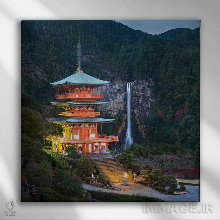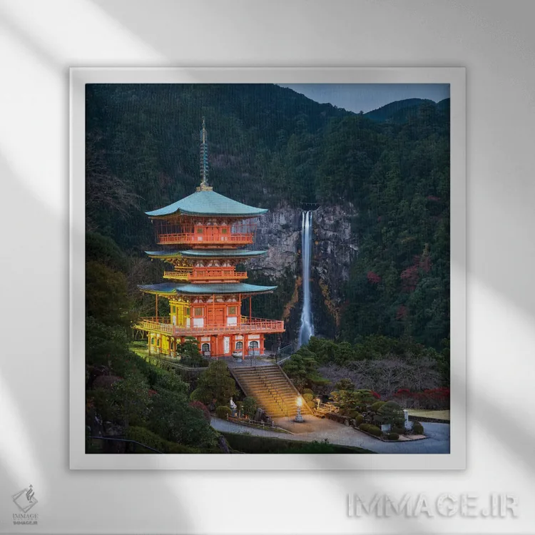 «Kumano Nachi—Taisha، Japan، پاگودای سهطبقه با آبشار ناچی در پسزمینه، کومانو ناچیتایشا، ژاپن» اثرِ «یان بکه» بازیِ دقیقِ خط و هندسه است؛ اتاق را مرتبتر و منسجمتر نشان دهد؛ برای استودیوهای طراحی انتخابی خوشسلیقه است. برای دیوار گالری هم گزینهٔ خوبیست.