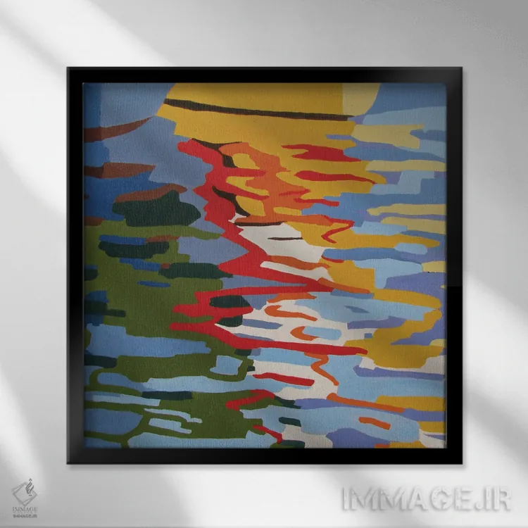 براساس پالت ترکیبی اثر، قاب تیک گرم (چوبی) پیشنهاد اول است و مشکی مات (فریم متوسط) مکمل. برای سفارشهای پروژهای با ابعاد و قابهای اختصاصی با ایماژ در تماس باشید.