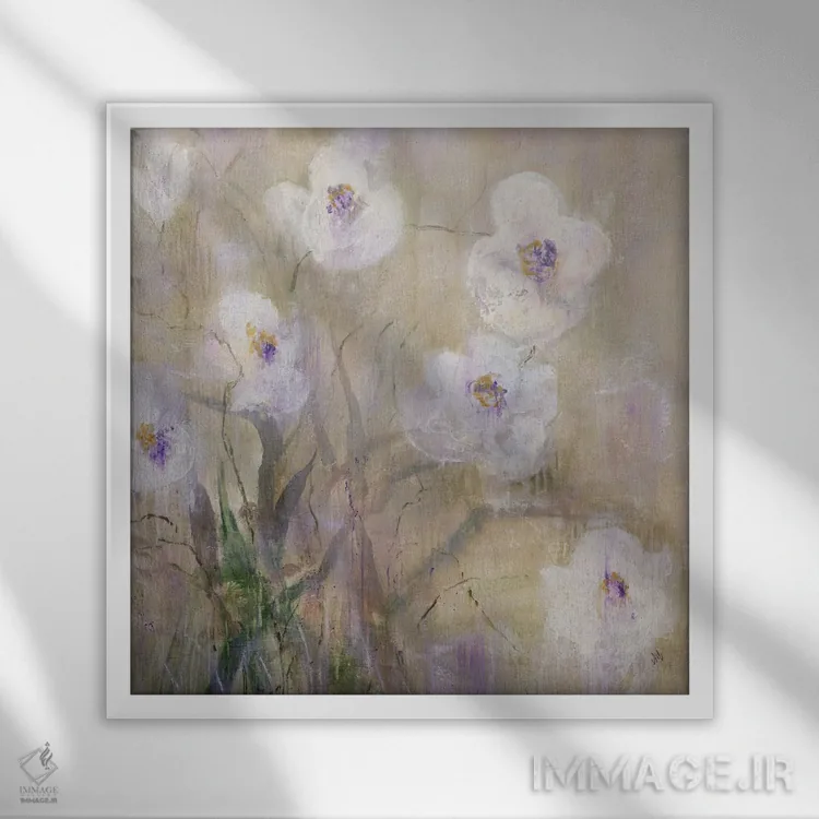 براساس پالت گرم اثر، قاب بلوط روشن (چوبی) پیشنهاد اول است و استخوانی ملایم مکمل. برای سفارشهای پروژهای با ابعاد و قابهای اختصاصی با ایماژ در تماس باشید.