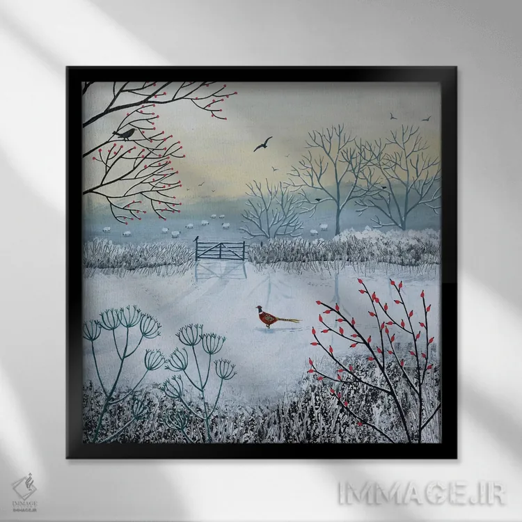 براساس پالت ترکیبی اثر، قاب تیک گرم (چوبی) پیشنهاد اول است و مشکی مات (فریم متوسط) مکمل. برای سفارشهای پروژهای با ابعاد و قابهای اختصاصی با ایماژ در تماس باشید.