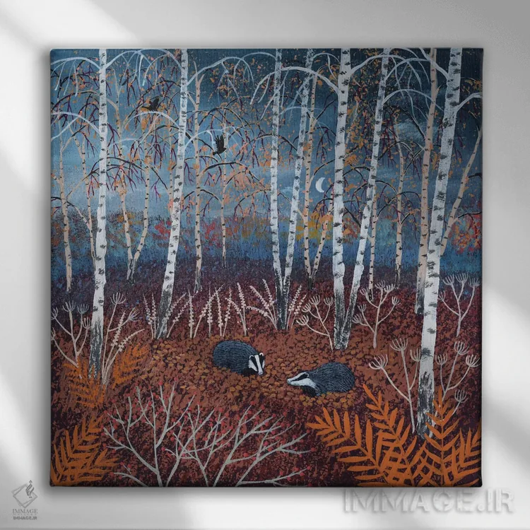 اگر دوست دارید دیوار روشنتر و آرامتر دیده شود، «گورها در جنگل پاییزی» اثرِ «جو گراندی» به دیوار، روشناییِ ملایم و دلنشین میدهد، برای دکورهای اسکانباوراوی گزینهٔ مناسبیست. با قاب روشن یا چوبی، حس طبیعیتری پیدا میکند.