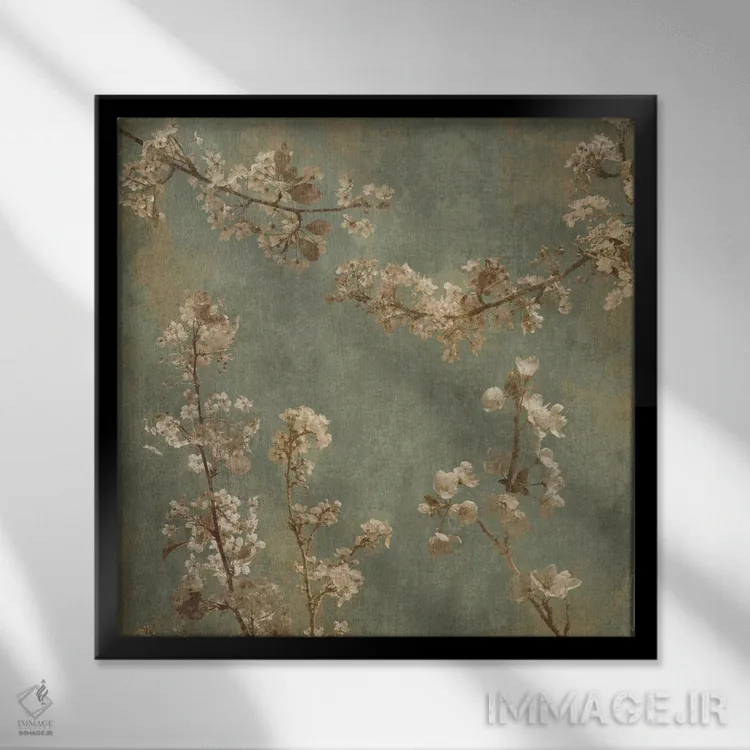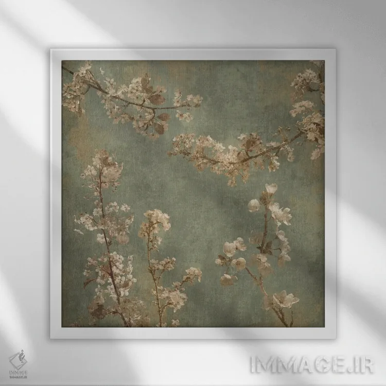 براساس پالت گرم اثر، قاب بلوط روشن (چوبی) پیشنهاد اول است و استخوانی ملایم مکمل. برای سفارشهای پروژهای با ابعاد و قابهای اختصاصی با ایماژ در تماس باشید.